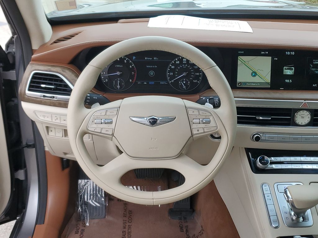 This large car has automated speed control that adjusts to maintain a safe following distance, enhancing highway driving convenience. This large car comes equipped with Android Auto for seamless smartphone integration on the road. This unit offers Apple CarPlay for seamless connectivity. The high efficiency automatic transmission shifts smoothly and allows you to relax while driving. See what's behind you with the back up camera on this vehicle. The Genesis G90 has a clean CARFAX vehicle history report. Maintaining a stable interior temperature in the Genesis G90 is easy with the climate control system. Easily set your speed in this unit with a state of the art cruise control system. Increase or decrease velocity with the touch of a button. The Electronic Stability Control will keep you on your intended path. This model has a V6, 3.3L high output engine. This vehicle is equipped with a gasoline engine. Bluetooth technology is built into the Genesis G90, keeping your hands on the steering wheel and your focus on the road. Keep your hands warm all winter with a heated steering wheel in this model . This is one of the largest cars available. The leather seats in it are a must for buyers looking for comfort, durability, and style. With the adjustable lumbar support in the Genesis G90 your back will love you. The installed navigation system will keep you on the right path. This large car is rear wheel drive. Never get into a cold vehicle again with the remote start feature on this large car. The Genesis G90 shines with an exquisite metallic silver exterior finish. This 2020 Genesis G90 is equipped with the latest generation of XM/Sirius Radio.