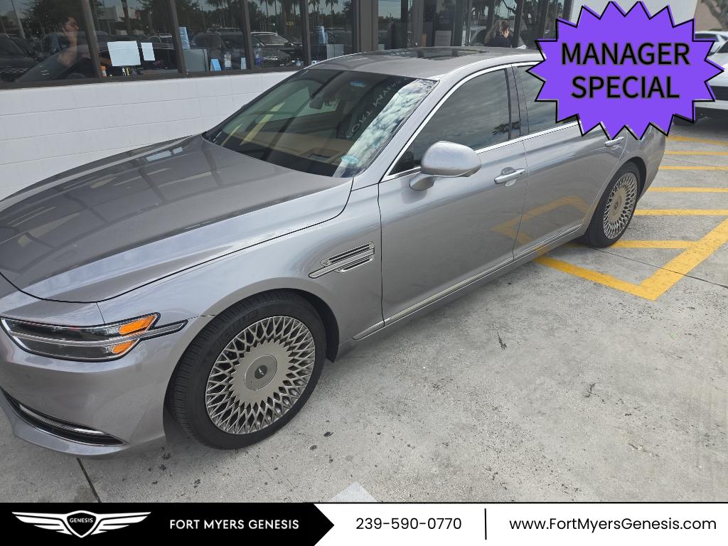 Located in Fort Myers, FL, this Genesis G90 is ready for a test drive. Contact us today to schedule an appointment and take advantage of the best price on this well-equipped, clean-history luxury sedan. Financing options available.Plenty of cargo room in this model for everything that travels with you. If you are looking for a tough long lasting vehicle, this the Genesis G90 is a great option for you. It will have plenty of room to safely transport your kids to the next ballgame or family outing. The speed and passing capabilities of this Genesis G90 will impress. Reduce your trips to the pump! It is one of the most fuel efficient vehicles in its class. Enjoy your driving more! This is one of the most exciting vehicles to drive in its class. The performance tuned suspension of it handles great on all turns. This vehicle has quick acceleration. Has plenty of room for the whole family! That makes this 2020 Genesis G90 perfect for the long summer road trips. The Genesis G90 comes loaded with all the features that will meet your needs and then some. Be sure to review the options listed on this page. With these performance numbers you wont be disappointed when you take it for a test drive. Gears one through three of this unit will impress. So will the 0-60 time. The supply is limited! If you are serious about this vehicle, we recommend you move fast. With having reputation for being one of the most dependable vehicles on the road,this vehicle won't let you down. When it comes to any auto purchase, there is nothing more important than safety. this 2020 Genesis G90 will protect you and your passengers with innovative safety features. The Genesis G90 has an immaculate interior and clean exterior. The interior looks brand new and there is not even a scratch on the paint. We have inspected the vehicle. It required minimal reconditioning. It is in above average condition. It is clear the previous owner took great care of it. The vehicle will give you many years of use as it has very low mileage. This vehicle is a certified CARFAX 1-owner. This 2020 Genesis G90 has never been in an accident. The exterior screams sophistication with long clean lines. This model has a ton of curb appeal. Elegant lines project confidence from the vehicle. Heads will turn. The personality of the vehicle is embodied by the flex of its muscular lines. The paint and clear coat are in exceptional condition. It shines bright after our hand wax detail. This Genesis G90 has aftermarket rims. This unit's tough strong personality is reflected in its rugged exterior design. Relax in the plush seats of this comfortable interior. The well designed interior is both functional and comfortable. The window design gives the driver excellent visibility. The class leading technology package inside this vehicle is out of this world. The interior has expansive leg room. The luxurious refined interior of it surrounds you with unsurpassed quality.