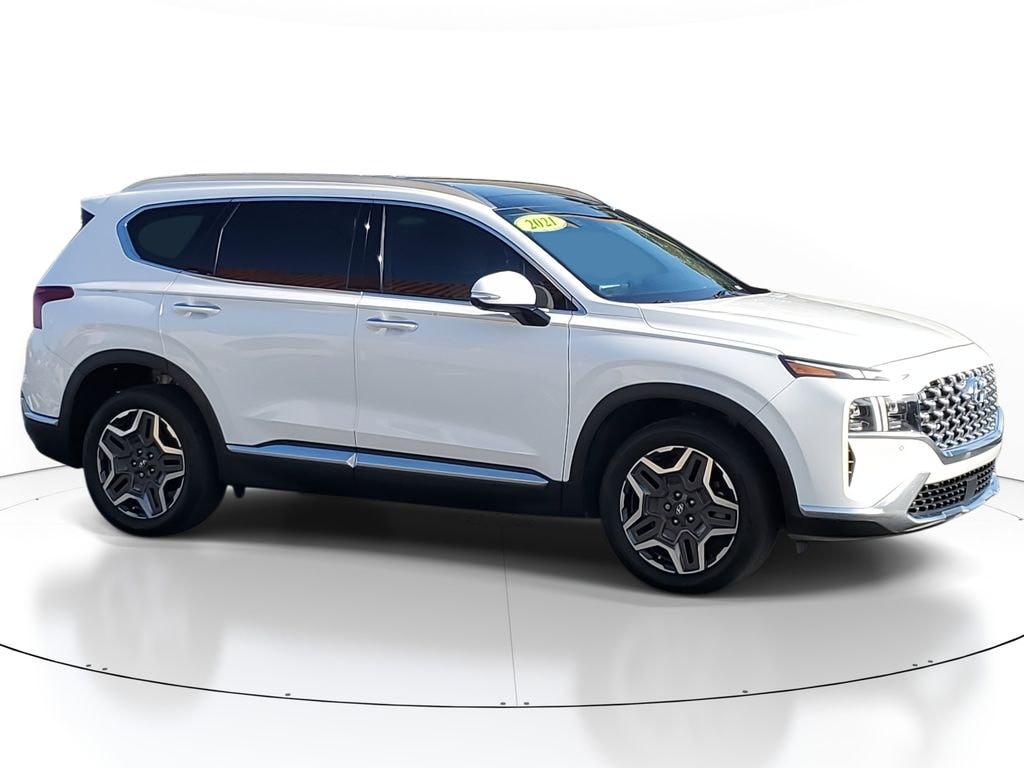This unit comes equipped with Android Auto for seamless smartphone integration on the road. Apple CarPlay: Seamless smartphone integration for the vehicle - stay connected and entertained on the go! This Hyundai Santa Fe offers Automatic Climate Control for personalized comfort. The high efficiency automatic transmission shifts smoothly and allows you to relax while driving. Protect this Hyundai Santa Fe from unwanted accidents with a cutting edge backup camera system. Good News! This certified CARFAX 1-owner vehicle has only had one owner before you. This 2021 Hyundai Santa Fe has a clean CARFAX vehicle history report. Set the temperature exactly where you are most comfortable in this 2021 Hyundai Santa Fe . The fan speed and temperature will automatically adjust to maintain your preferred zone climate. Easily set your speed in this vehicle with a state of the art cruise control system. Increase or decrease velocity with the touch of a button. The Electronic Stability Control will keep you on your intended path. This vehicle has a 4 Cyl, 2.5L high output engine. Front wheel drive on it gives you better traction and better fuel economy. This mid-size suv is equipped with a gasoline engine. It features a hands-free Bluetooth phone system. This vehicle is pure luxury with a heated steering wheel. With the keyless entry system on the vehicle you can pop the trunk without dropping your bags from the store. Lane Keep Assist in the vehicle helps maintain safe driving by gently steering to stay within the lane. The leather seats in it are a must for buyers looking for comfort, durability, and style. Help alleviate lower back pain with the driver seat lumbar support in this model. The spacious cabin accommodates your family and friends in comfort. Take it to the mountains or the beach. the Hyundai Santa Fe can handle it all. You'll never again be lost in a crowded city or a country region with the navigation system on the vehicle. Enjoy the convenience of the power liftgate on this model. Never get into a cold vehicle again with the remote start feature on this vehicle. The vehicle embodies class and sophistication with its refined white exterior.