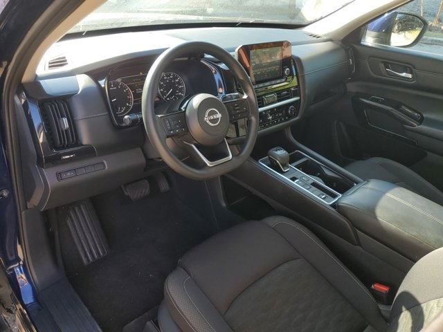 The 2022 Pathfinder S offers a perfect mix of power, versatility, and comfort, giving it an edge over competitors like the Toyota Highlander, Honda Pilot, Ford Explorer, and Chevy Traverse. Its Deep Ocean Blue Pearl exterior paired with a clean charcoal interior creates a sleek, commanding presence on the road.